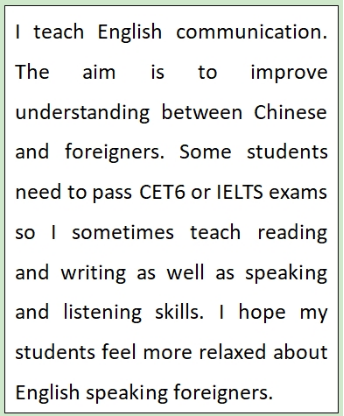 I speak 2 languages fluently and I am learning Chinese Mandarin. I like learning foreign languages but English is my first language (mother tongue). I have a degree in English and qualified as a teacher in 1999. I was born and educated in South Africa but have an Irish passport through ancestry. My grandmother was born in Ireland. Many South Africans speak English as their first language. I started teaching English here in 2011. I usually return to South Africa every year for the holiday. I am Mr Evans.
