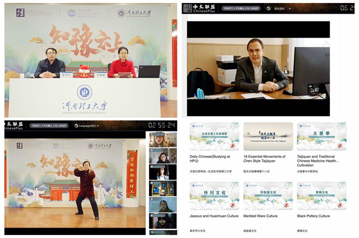本次“知豫云上”线上体验营为期14天,包含精心准备的43节录播课程和11节直播课程。不仅有生动有趣、浓缩精炼的中文课程,还有太极拳、中医、美食、陶瓷、音乐、剪纸、品茶等具有河南省特色的中国传统文化课程,课程形式既有丰富特色的理论讲解,也有通过“云体验—虚拟仿真实验项目”等创新科技实践课程,以及“国际视频音乐会”等文化交流活动。课程不仅有来自我校文法学院、建艺学院、太极拳学院、音乐学院等学院的教师担任主讲,还特邀陈氏太极拳第十一代传人陈正雷、剪纸非物质文化遗产传承人王瑞玲、新一代黑陶制作传承人汤丽等名人名家亲临现场线上授课,为海外学生们送上一份精彩纷呈的语言与文化盛宴,将让学员以沉浸式的方式学习中文知识、感知魅力河南、体验中国文化、了解当代中国。目前,体验营正在有序的进行中。