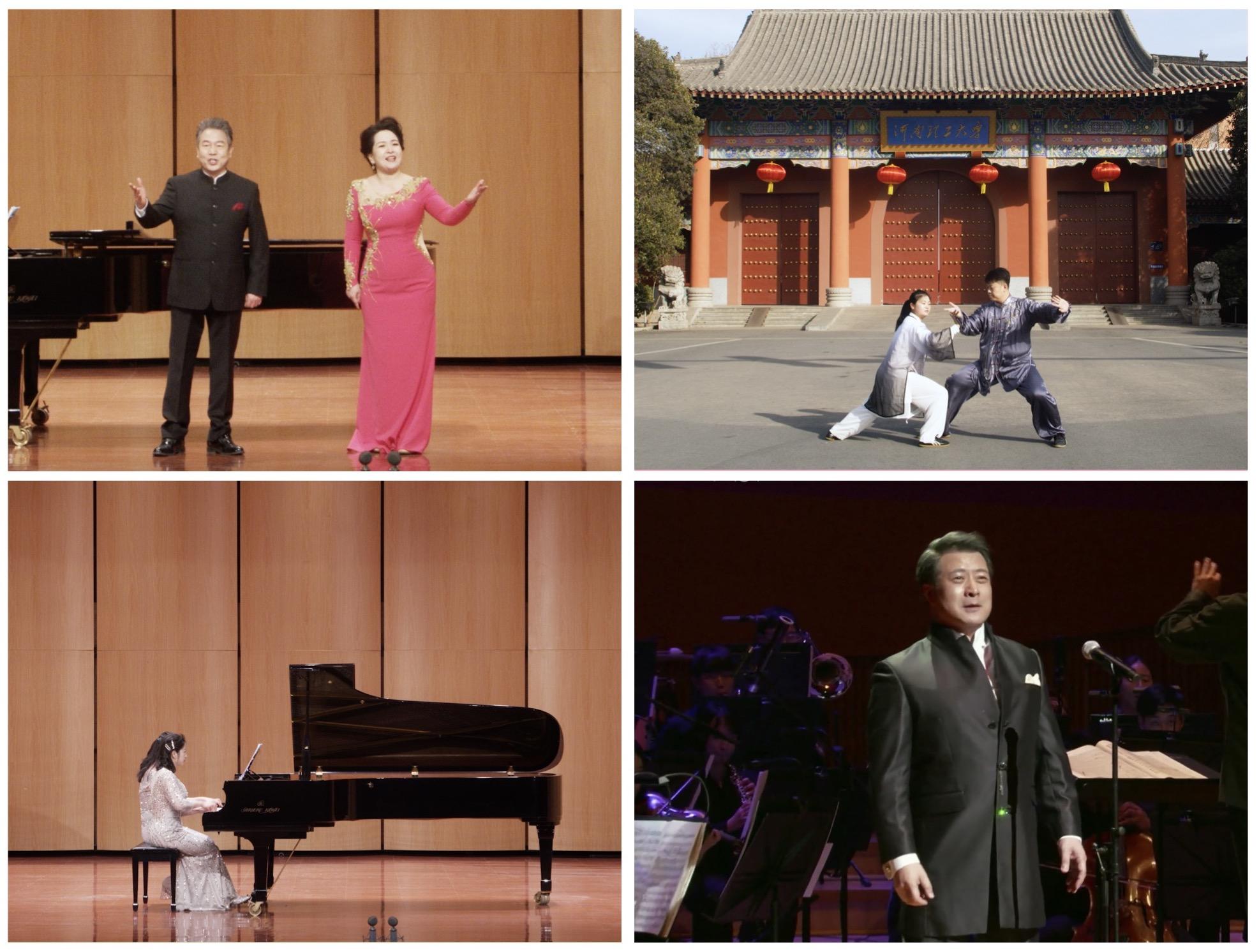 自倡议发起以来,我校各方认真筹备,音乐学院和体育学院(太极拳学院)教师积极参与节目录制;海外友好高校踊跃响应,及时发来领导致辞和文艺节目视频。经过短短几周的创意策划和节目录制,一场形式新颖、内容丰富的视频音乐会剪辑制作完成。本次视频音乐会分为“共抗疫”和“庆新春”两个篇章,共包含9个节目。音乐会上,颇具中国特色的民歌对唱和太极拳表演、美妙优雅的钢琴弹奏、风格各异的中外文的歌曲演唱、热闹欢快的歌舞表演,精彩纷呈,给观众带来了一场精妙绝伦的视听盛宴。各校领导、师生和艺术家们用致辞、音乐激发了“和衷共济、团结抗疫”的勇气,表达了“守望相助、共克时艰”的决心,传递了“喜迎新春、共庆佳节”的祝福。