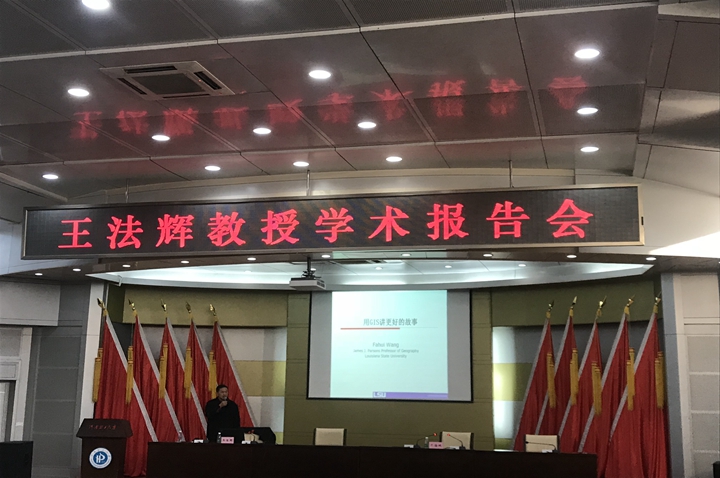 12月12日下午,应我校测绘学院之邀,美国路易斯安那州立大学地理与人类学系教授王法辉在力行楼学术报告厅作题为《用地理信息系统讲更好的故事》的学术报告,测绘学院200余名师生共同聆听了此次报告会。报告会由测绘学院副院长牛海鹏主持。
