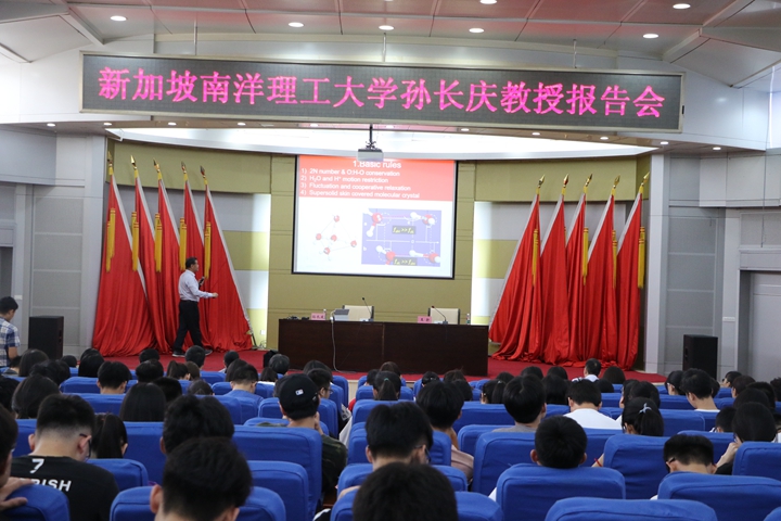 6月27日上午,应物电学院邀请,新加坡南洋理工大学教授孙长庆在校学术报告厅,为该院师生作题为《神奇的氢键与魔幻的水》的学术报告,该院部分师生聆听了此次报告。报告会由该院副院长王新主持。
