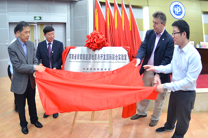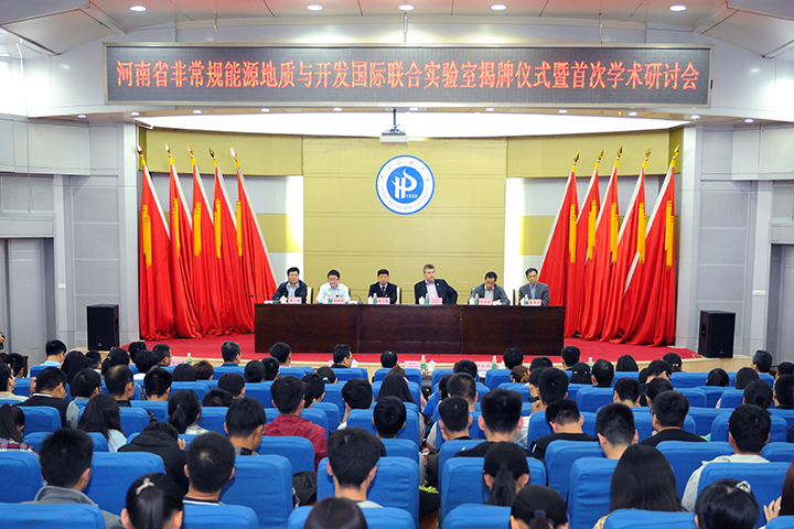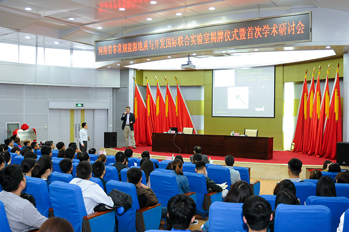 5月21日下午,河南省非常规能源地质与开发国际联合实验室揭牌仪式暨首次学术研讨会在我校力行楼学术报告厅举行。校长杨小林、美国工程院院士德芮克出席仪式。宾夕法尼亚州立大学教授刘世民、资环学院院长齐永安、资环学院副院长金毅、国际联合实验室主任曹运兴、该院相关专业教师及学生参加了活动。揭牌仪式由齐永安主持。