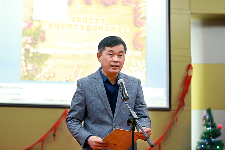 赵俊伟在晚会上致辞。他向我校所有的外籍教师和国际学生送上温馨的节日祝福,对在我校辛勤工作的外教表示感谢,并对国际学生寄予了殷切希望,祝愿他们学有所成。他希望在大家的共同努力下,我校的国际教育能够再上新台阶,开创我校开放办学历史新篇章。