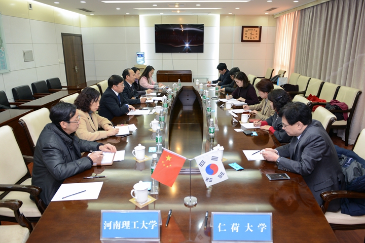 会上,杨小林首先致欢迎辞,对仁荷大学校长代表团的来访表示热烈欢迎,并向来宾介绍了我校的建校历史、学生和师资规模、特色专业等概况。接着,崔顺子也介绍了仁荷大学的学生及教职工数量、特色专业等基本情况,指出两校都在工科具有较强优势,希望两校间今后在工科领域进行更多交流合作,为实现两校更多的学生互换、教师互访奠定良好的基础,并诚挚的邀请杨小林到仁荷大学进行访问交流。会谈中,双方还讨论了共同申请中外合作办学项目、研究生层面合作的可能性。