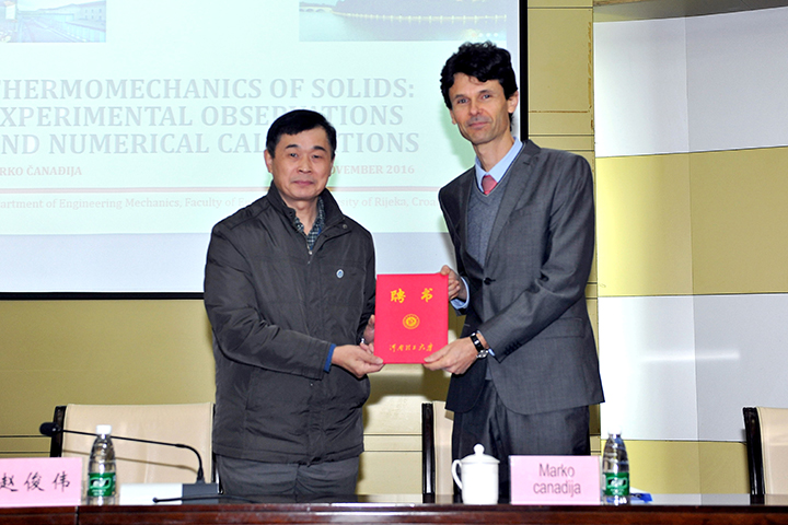 11月10日上午,克罗地亚里耶卡大学教授马科·卡那迪加受聘为我校兼职教授仪式暨学术报告会在我校学术报告厅举行。仪式上,副校长赵俊伟为马科·卡那迪加颁发了聘书。材料学院院长管学茂与马科·卡那迪加签署了合作协议。仪式由材料学院副院长郭学锋主持,该院师生近300人参加仪式并听取了报告。
