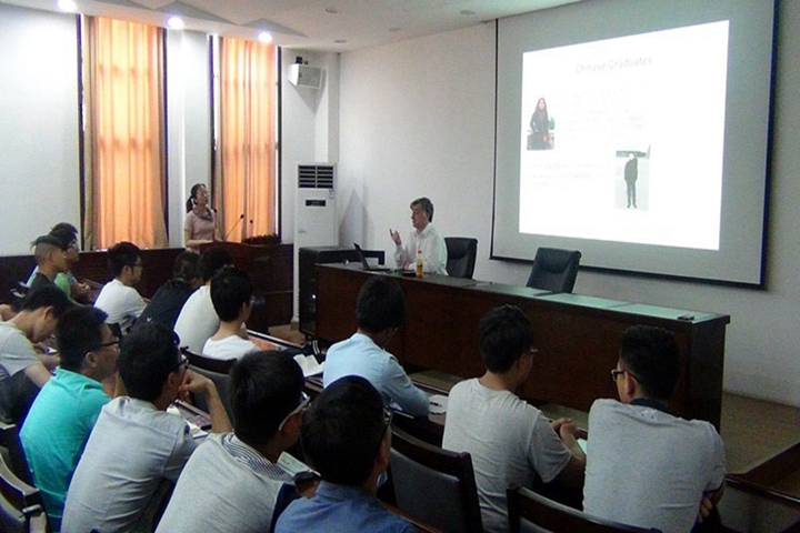 汤姆为师生介绍了利莫瑞克大学的办学历史,展示了学生公寓、体育活动以及部分优秀中国留学生的情况,并向师生介绍了利莫瑞克大学学生的学习方式,重点讲解了学生动手能力的培养过程和教学经验,针对我校学生“听课为主”的学习模式,建议我校学生要勇于表达自己,培养团队合作能力。