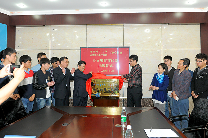 4月19日上午,我校与台湾固纬电子有限公司联合共建实验室揭牌仪式在电工电子实验中心会议室举行。台湾固纬电子有限公司大中华区总经理郭国栋、副总经理王光耀、河南地区技术总监张卫东,教务处处长沈记全、电气工程与自动化学院院长王福忠等参加揭牌仪式。