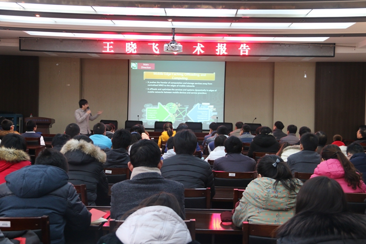 1月11日下午,英属哥伦比亚大学高级研究员王晓飞莅临我校,在计算机学院201学术报告厅作了题为《未来智能互联网和绿色移动网络》的学术报告。报告会由该院副院长杨立身主持。