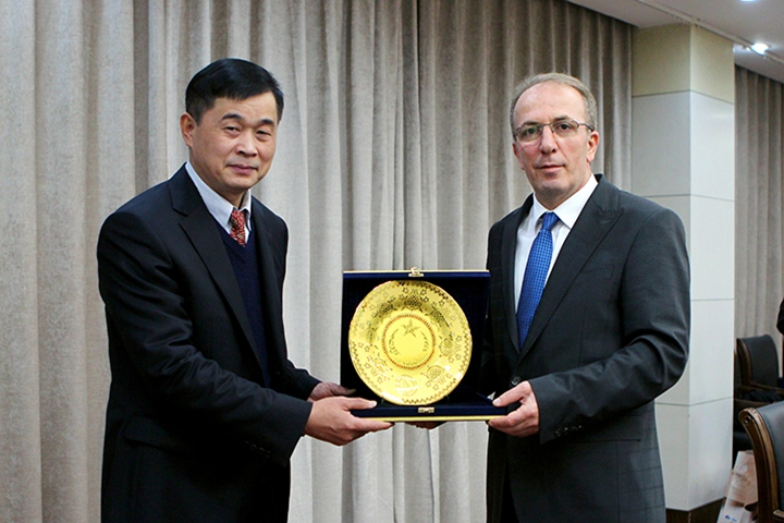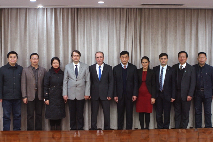 11月10日至11日,土耳其比伦特·埃杰维特大学工学院院长兼科学技术研究应用中心主任阿尔罕·乌尊、对外合作办公室主任兼测绘工程系主任蛤坎·库塔哥鲁、工程学院副院长茹克叶·乌尊、国际事务协调员丁瑟·拜瑟一行4人莅校访问交流。10日下午,我校在行政楼一楼会议室举行欢迎仪式,副校长赵俊伟出席仪式并与客人亲切会谈,国际处、安全学院、能源学院、测绘学院、材料学院负责人员参加会谈。仪式由国际处处长罗绍河主持。