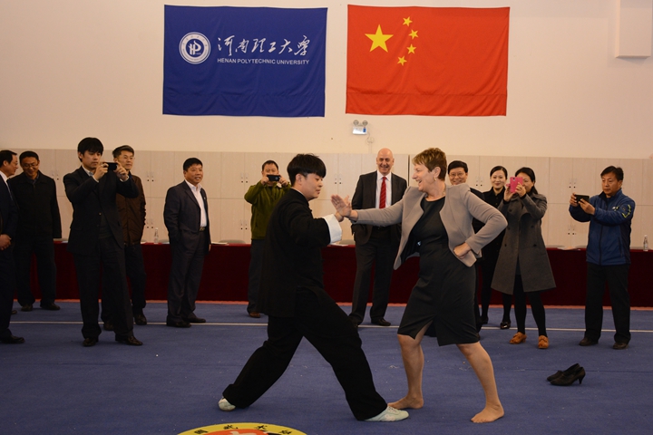 西苏格兰大学副校长简·凯与体育学院教师进行太极拳互动