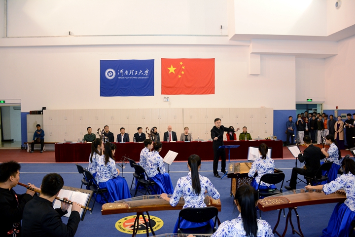 下午,克雷格·曼哈尼一行参观了校史馆,并在我校体育馆观看了体育学院和音乐学院组织的太极拳系列表演与民族乐器演奏,简·凯还与体育学院师生进行了现场太极拳互动。