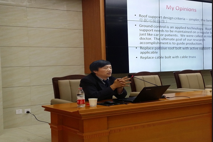 郭颂怀着对母校的感激,从自身多年科研经验出发,采用大量实例说明了“现场是最好的实验室”的科研理念,进而介绍自己在煤巷支护方面的相关研究成果,展示美国先进的巷道支护技术、理论和计算机模拟软件的使用技巧,并与现场教师和学生就相关问题进行互动与交流。