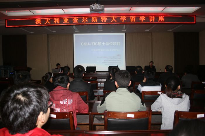 查尔斯特大学硕士留学项目宣讲会当天下午在计算机院学术报告厅举行。金维周介绍了澳大利亚IT现状、查尔斯特大学的概括,就硕士研究生培养和带薪实习项目开展的详细情况做了阐述,并就学生关心的问题作了现场解答。