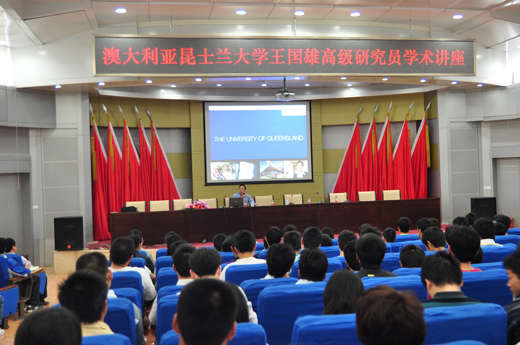 报告会上,王国雄首先介绍了昆士兰大学的地理位置、历史沿革、学院机构等基本情况,及昆士兰大学和政府针对留学生推出的优惠政策,鼓励我校留学生争取获得该校的PHD学位。接着,他向大家详细讲解了煤层气的基本概念和基本用途。他指出,与煤炭能源相较,煤层气资源的利用具有环保、安全等多方面的意义,因此作为一种新兴的煤层气增产技术——CO₂捕获和封存技术就显得尤为重要。随后,针对昆士兰大学能源研究室在该领域的先期研究成果,王国雄主要对大气中的CO₂的捕获技术、注入增产技术、封存技术的研究等方面进行详细阐述。最后,他号召同学们要多了解关于煤层中气体的运移、产出机理和煤层气开采过程的数值模拟及建模等一系列知识,为煤层气能源的发展贡献自己的力量。