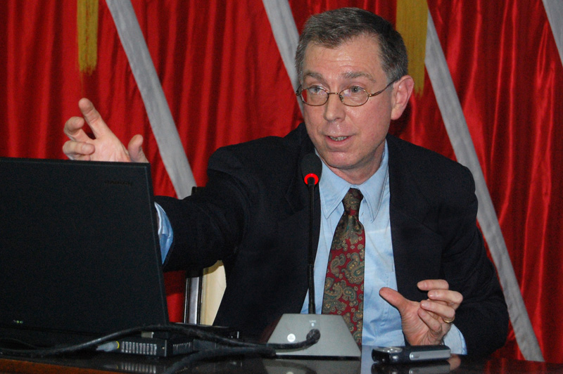 报告会上,Robert教授首先从人们一贯的浮躁经济行为入手,探讨了由此引发的对人性的思考,并透析了古文化与此类行为的联系与碰撞。随后,他运用基本的经济学原理,从日常生活消费事例中揭示了人们的浮躁心理,分析了非理性消费行为所造成的损失,并从古文化中摘取相关的理论,探索了此类消费行为的文化根源,从而启发人们应采取自我控制的策略来恰当处理日常消费行为,利用古文化给予的启示对自我经济行为进行规范,树立正确的理财、消费观念。报告会中,Robert教授举例鲜活生动,讲解深入浅出,言辞风趣幽默,深深感染了在座师生。