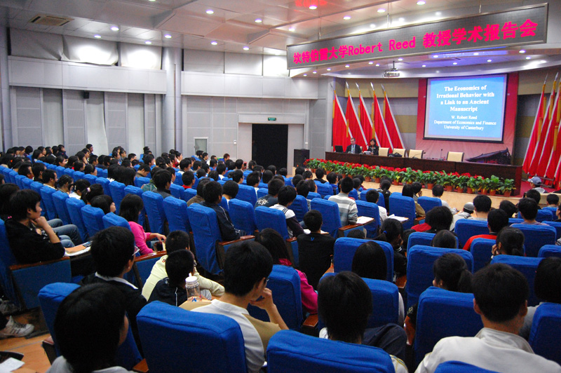 10月28日晚,外国语学院、经管学院、国际交流处邀请新西兰坎特伯雷大学Robert Reed教授在我校南校区学术报告厅为师生们作了一场题为《浮躁的经济行为与古文化的碰撞》的报告。