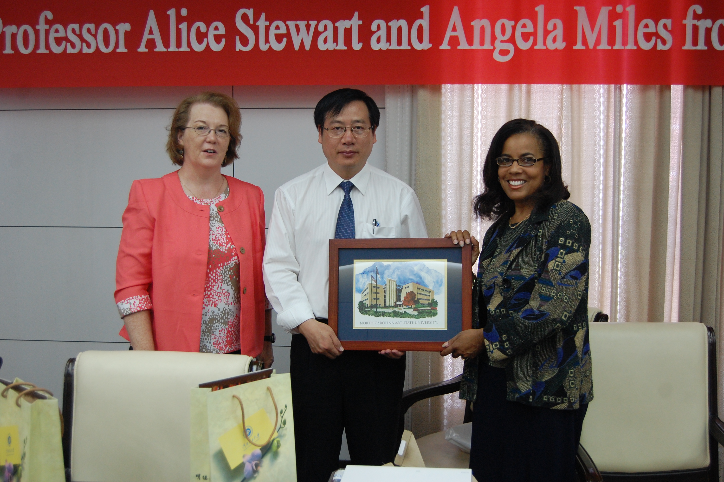 仪式上,国际合作交流处(港澳台事务办公室)处长罗绍河对两位教授的到访表示热烈的欢迎,对我校的办学历史和发展现状进行了较详细的介绍,对2007年以来两校的交流情况进行了简要回顾,并对两校今后的交流合作给予了很高的期待。经管学院院长曾旗详细介绍了经管学院的情况,并邀请两位教授参加今年9月份在我校举办的管理科学国际会议。Alice等两位教授对我校的盛情款待和周到安排表示了诚挚感谢,并分别介绍了北卡农工大学和该校经管学院的历史、现状和办学特色。