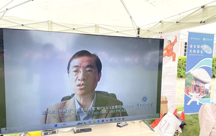 开幕式上,我校学术副校长金双根通过视频的方式为活动致辞。他指出每年的太极盛典活动为意大利民众提供了一个交流学习太极拳的平台,让太极拳这一强身健体、修身养性的中国传统文化瑰宝被更多人所熟知。依托太极拳发源地优势和良好的国际中文教育学科基础。近年来,学校开展了多项“国际中文+太极”的教学和研究探索,他欢迎意大利的中文和太极拳爱好者到河南理工大学来学习交流。