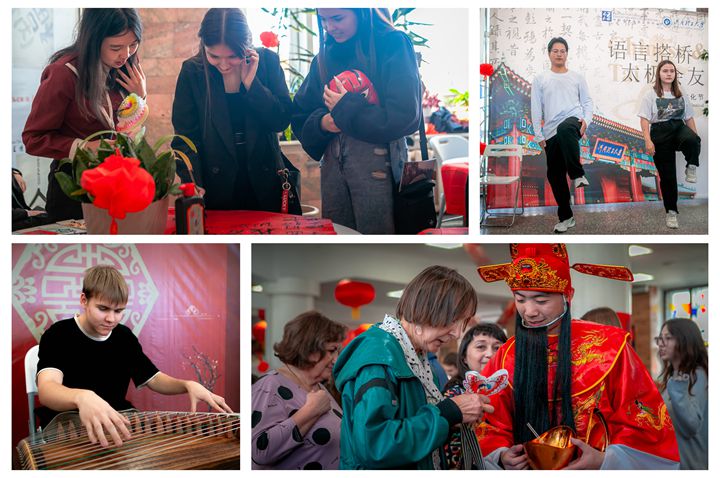 活动为期5天,共包含中国艺术节晚会、中国文化体验活动、中国城市风景图片展、中国书法国画展、中国经典电影展播等版块,我校正在俄罗斯伊尔库茨克国立理工大学学习的学生全程参与活动组织。中国艺术节晚会表演精彩纷呈,我校与俄罗斯师生在国内与俄罗斯现场梦幻联动,共同带来了太极拳表演,获得观众阵阵喝彩。中国文化体验活动趣味十足,跟练学太极、学写毛笔字、绘画京剧脸谱、汉服试穿打卡、拼接木榫建筑模型等活动让现场观众全方位体验太极、汉字、戏曲、服装、古建筑设计等中国传统文化的魅力。中国书法国画展题材丰富,我校建艺学院韩宏斌、王海、杜少康等3位教师参展的中国画作品获得现场观众一致称赞。