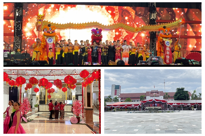 2月25日(正月十六),在印度尼西亚泗水市政府广场,由我校参与组织的一场前所未有的元宵节庆典拉开帷幕。印尼泗水市市长等官员悉数到场,万余名观众共襄盛典。泗水市政府大厅内外,大街小巷张灯结彩,中国之外的一座城也洋溢着“元宵灯节”的喜庆气氛。当地民众盛装参加,活动现场座无虚席,更有数不尽的民众席地而坐,他们期待着一睹东方古国的文化风采。庆典上,龙舞、狮舞、武术节目轮番上演,带去了中国节日的热闹喜庆,展现了中国文化的博大精深。中国歌曲与中印尼合作的歌曲交织在一起,旋律优美动听,让人心潮澎湃。此刻,中印文化得以交融互鉴,中印民众得以民心相通,在泗水这座城共同谱写了中印友好文化交流的华丽篇章。