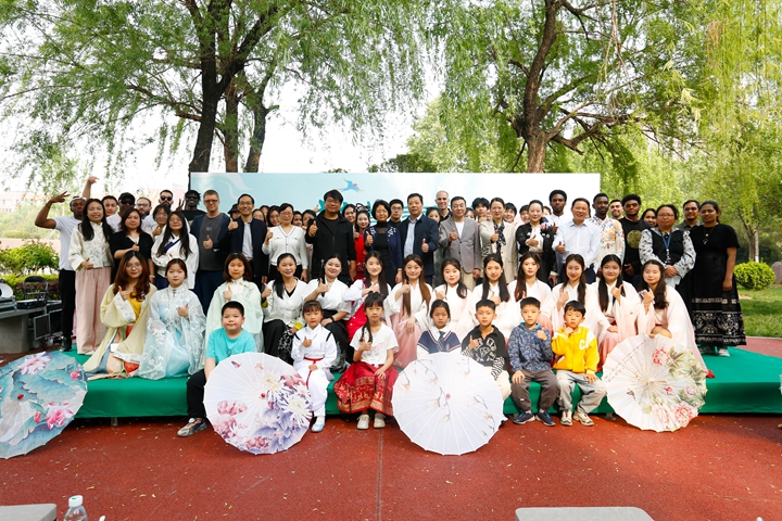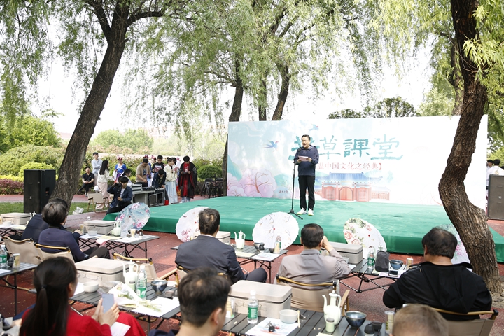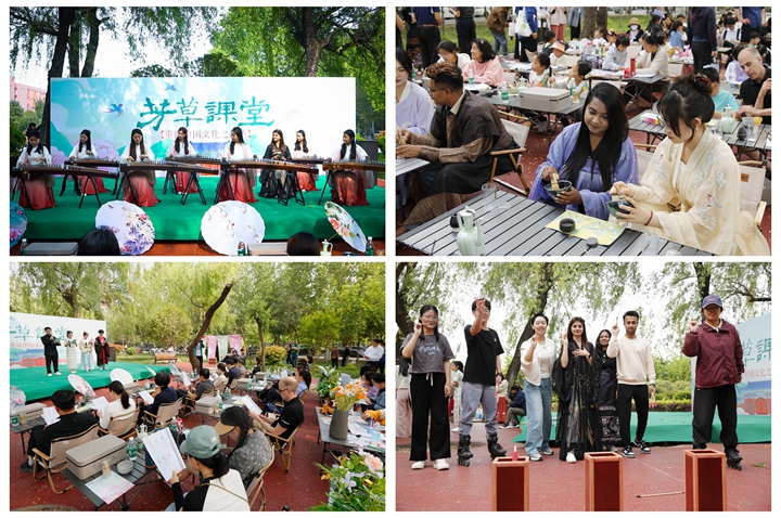 书香流动文化园,清音绕梁享春光。时值谷雨,第15个联合国中文日如期而至。为积极响应中外语言交流合作中心与中文联盟庆祝2024“国际中文日”活动倡议,4月20日下午,学校在南校区历史文化园隆重举行主题为“芳草课堂——重温中国文化之经典”的2024年国际中文日庆祝活动。本次活动由国际处(国教院)主办,文法学院、太极拳学院、音乐学院参与,副校长程伟出席活动,统战部、国际处(国教院)、学生处、研究生院、后勤保障部、文法学院、太极拳学院等单位负责人与百余名中外师生共同参加。