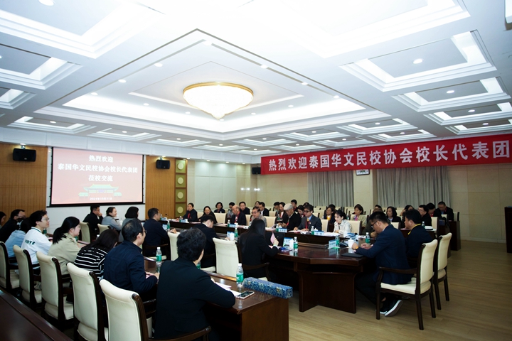10月30日,泰国华文民校协会主席黄迨光率领来自龙仔厝三才公学、公立致中学校、公立正才学校等十所泰国华文民校的校长等31人莅校访问。副校长边亚东和学术副校长金双根分别与黄迨光一行进行了座谈和交流。