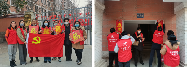 志愿者们齐聚在外籍教师公寓楼下,一组人员负责打扫公寓楼道、清除往年对联,另外一组人员合作粘贴火红的迎春对联。春联上飘逸的毛笔字体,构思精巧的汉字表达,传递出理工人的真挚情感,节日气氛瞬间拉满。鲜艳的红马甲映照着火红的春联,寒冷的冬日里外籍教师公寓门前涌动着一簇簇炽热的火焰。