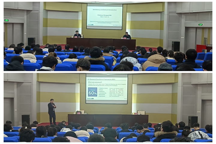 报告会上,吴宏伟首先介绍了赫特福德大学的地理、历史、学科分类及学科发展,以及在英国留学与在国内学习存在的差异。接着,吴宏伟介绍了英国大学的产学研评价体系,为有意愿选择去英国留学的同学提供了宝贵的信息。然后,吴宏伟依托案例,重点介绍了纳米流体及其关键性能参数,指出了纳米流体及复合纳米流体应用中存在的问题,提出了复合纳米粒子制备纳米流体这一研究方向,并介绍了其团队研究复合纳米流体的实验方法、实验过程及其团队在纳米流体方向的最新研究成果。最后,吴宏伟分享了自己的研究与工作经历,与现场师生进行了互动交流,详细解答了多位老师和同学们关于科研和生活方面的问题,鼓舞学生勇攀科研高峰,同时也欢迎各位同学前往英国深造,在科研和学习生活中取得新成绩。吴宏伟的精彩讲座,拓宽了我校学生的科研与国际视野,鼓舞我校学生积极向上、奋发有为,在奋斗中谱写科研与学习之路上的绚丽篇章。