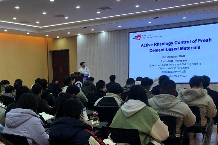 12月27日上午,香港城市大学焦登武博士应邀在材料学院2103为材料学院师生作了题为《新拌混凝土流变性能的主动调控技术》的学术报告,相关专业教师、研究生和本科生参加了报告会。