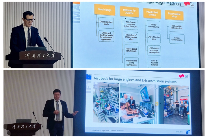 11月19日至22日,应材料学院与河南省高性能轻金属及其数值模拟国际联合实验室(以下简称国际联合实验室)共同邀请,奥地利格拉茨技术大学材料科学与焊接成型学院院长绍默茨、生产工程学院院长哈斯来校开展国际合作交流。