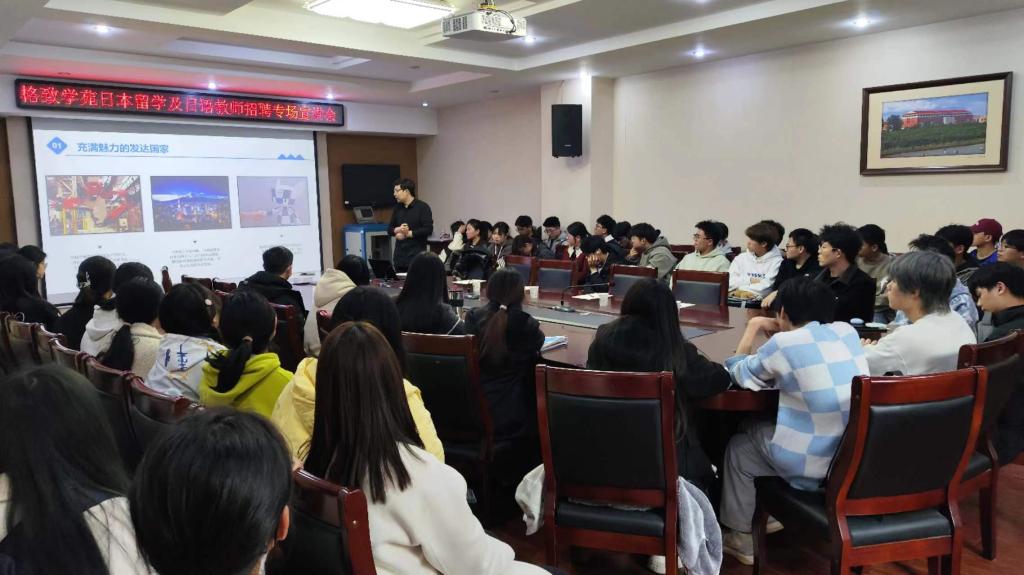 为帮助外国语学院日语专业学生明确就业方向,端正就业态度,3月12日下午,外国语学院于文综楼311会议室举办了格致学苑日本留学及日语教师招聘专场宣讲会,会议由格致学苑老师徐柯主讲。