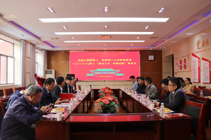 10月28日,美国工程院院士、河南理工大学特聘教授彭赐灯“墨金人生 卓越贡献”座谈会在能源学院201会议室举行。原副校长周英、能源学院全体院领导和相关教师代表近30人出席座谈会,座谈会由该院副院长李东印主持。