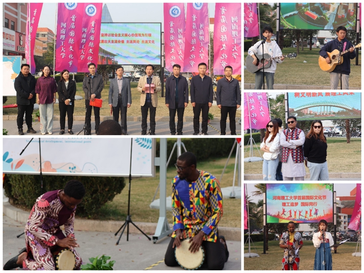 金双根致辞,他表示国际文化节对于促进多元文化交流、理解和融合,增进国际友谊具有重要意义,希望以此为契机加强国际文化合作与交流,并宣布河南理工大学首届国际文化节开幕。