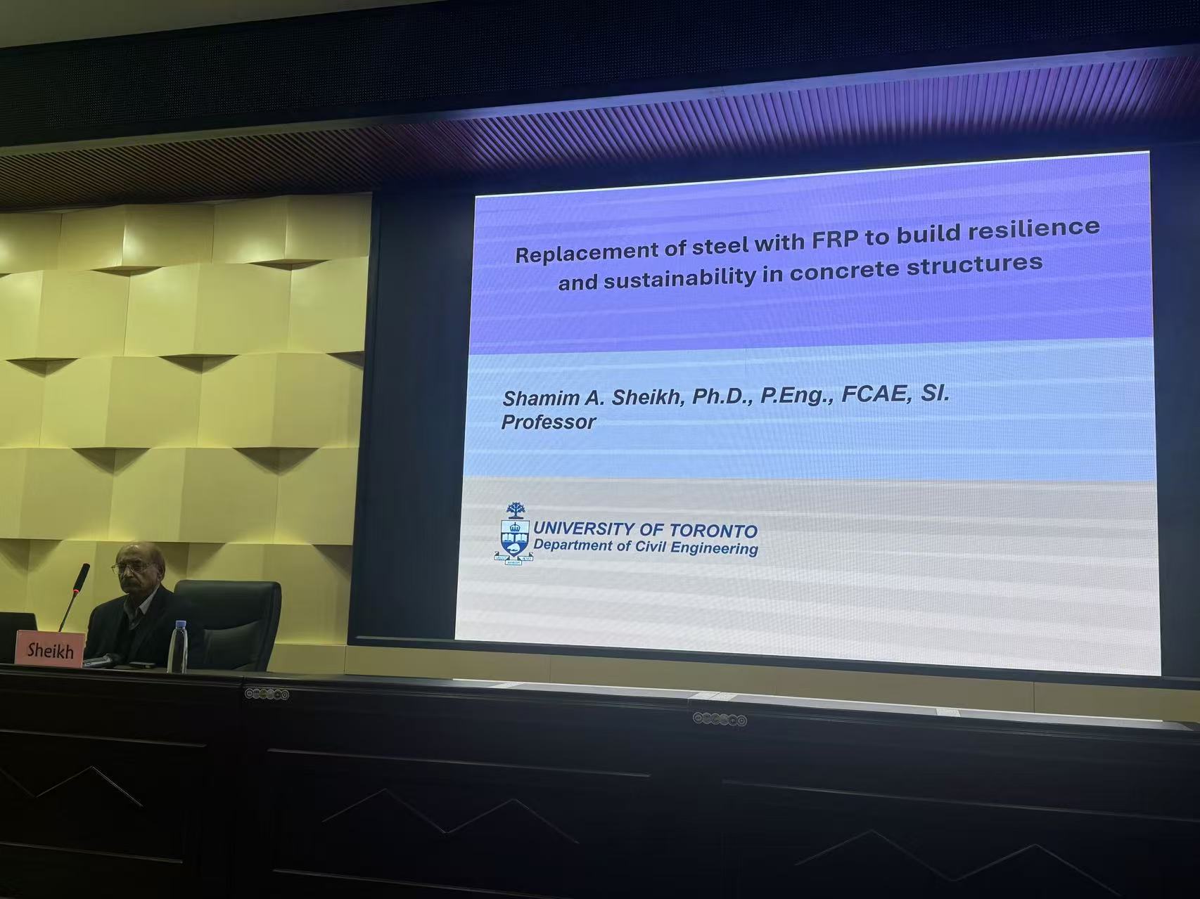 11月19日,加拿大工程院院士Sheikh教授应邀为我校土木工程学院教师和研究生做了题为“Replacement of steel with FRP to build resilience and sustainability in concrete structures”的学术报告。报告在土木工程学院101报告厅召开,由土木工程学院院长钱辉主持。