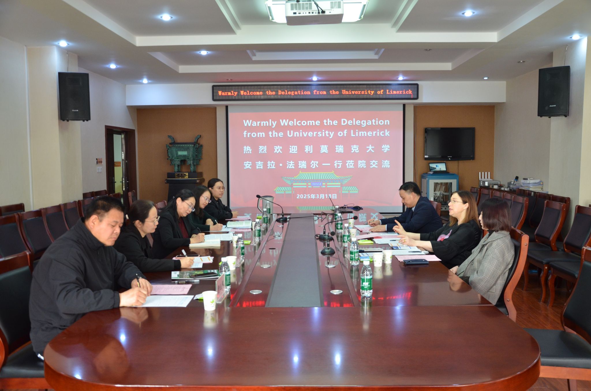 安吉拉•法瑞尔对外国语学院的热情接待表示感谢,并系统介绍了利莫瑞克大学在艺术、人文与社会科学领域的学科优势与创新成果。她表示,利莫瑞克大学高度重视与中国的教育合作,期待与外国语学院建立长期稳定的伙伴关系,通过联合举办学术工作坊、开展师生短期交流项目等方式,深化两校在人才培养和学术研究等领域的合作。