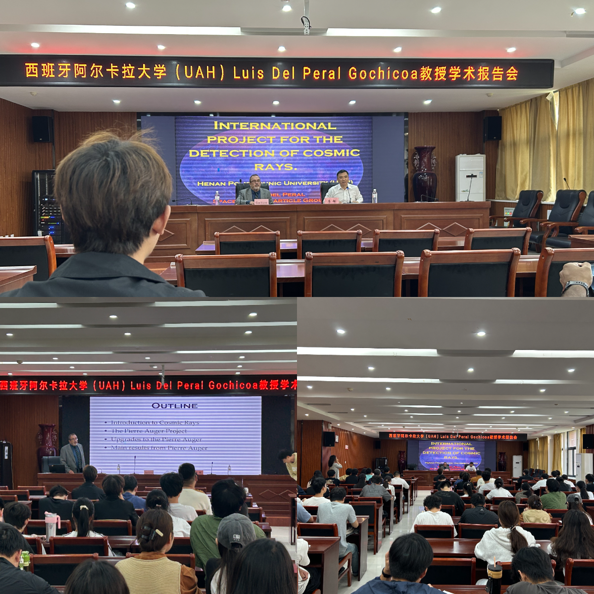 为追踪空间物理与天体粒子研究前沿、拓展国际学术视野,9月29日下午,物理与电子信息学院特邀西班牙阿尔卡拉大学原子物理与核物理终身教授、国际知名天体粒子物理学家Luis Del Peral Gochicoa先生在学院226会议室作题为“The Pierre Auger International Project for the Detection of Cosmic Rays”学术报告。副院长李辉主持报告会,近百名师生到场聆听。