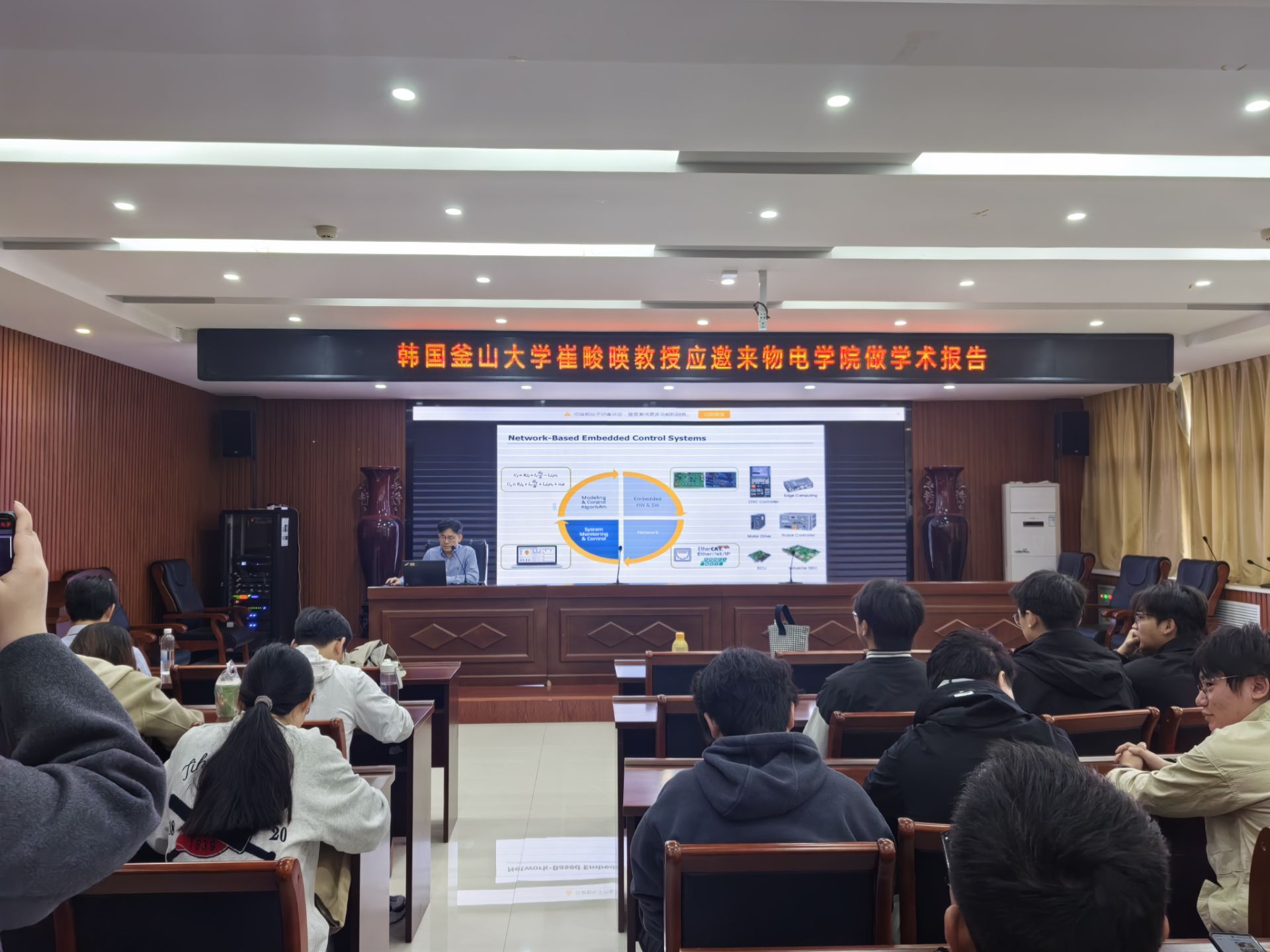 2025年10月16日,物电学院在226大会议室举行学术报告会,特邀韩国釜山大学嵌入式控制系统实验室负责人崔畯暎教授担任主讲嘉宾。报告会由学院副院长李辉主持,学院全体研究生到场聆听。